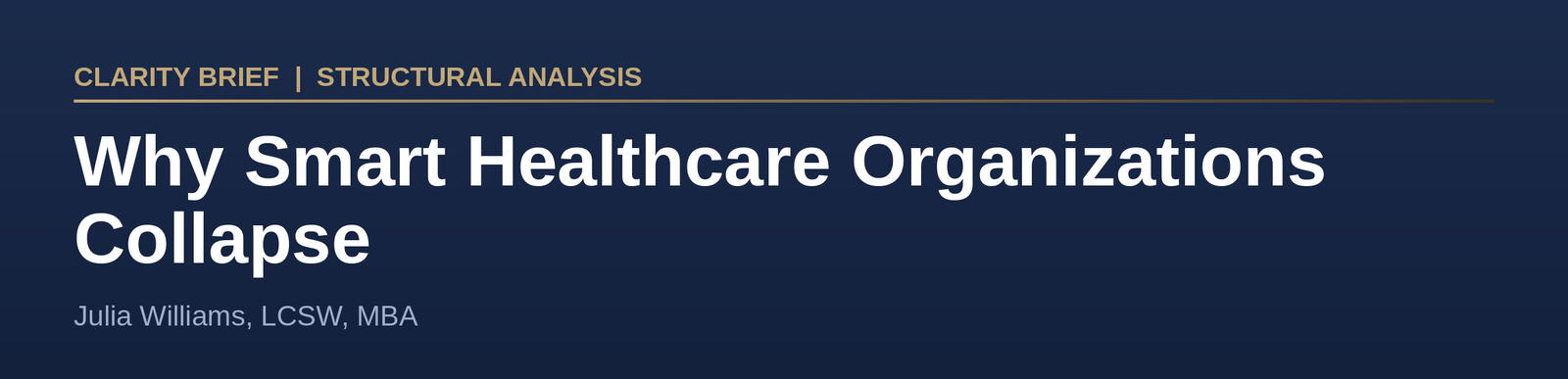 The organizations that collapse are not usually the ones with bad leadership, weak clinicians, or unclear mission. They are often the ones where everyone is doing their job well, right up until the system can no longer hold.